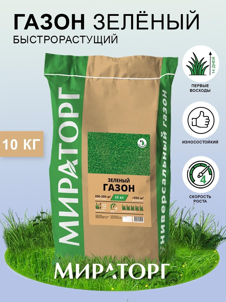 Семена газона Мираторг Зеленый газон 10 кг - универсальная травосмесь. Газон неприхотлив в уходе, благодаря чему идеально подойдет, когда требуется экспресс озеленение или ремонт газона. Смесь не требует частого полива и это значительно облегчает уход за ней.Травосмеси находят широкое применение в городском и дорожном, загородном и приусадебном озеленении, создании спортивных газонов. Газонные травосмеси отвечают высоким требованиям: устойчивость к неблагоприятным условиям окружающей среды, быстрое отрастание после частого скашивания, устойчивость к вытаптыванию, засухоустойчивость, зимостойкость.