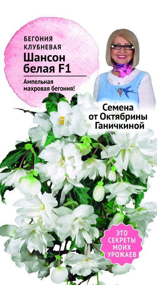 Семена ОКТЯБРИНА ГАНИЧКИНА Бегония клубневая Шансон Белая F1 6 шт. 119644 применяются для выращивания на частном участке. Ампельная бегония. Растение формирует 5-8 побегов длиной 35-40 см, усыпанных белыми цветками. Цветки махровые и полумахровые, камелиевидной формы, 6-8 см в диаметре. Цветение обильное и продолжительное. Ампельная бегония великолепно смотрится в подвесных кашпо и балконных ящиках. Бегония клубневая - многолетняя мелкосемянная культура, требовательная к условиям выращивания. Предпочитает плодородные, хорошо увлажненные почвы. Посев на рассаду в декабре-феврале. Гранулы располагают на поверхности субстрата, не засыпают, а лишь слегка прижимают и накрывают стеклом или пленкой. Для прорастания семян необходим свет и температура 22-24 °С. Полив производят из опрыскивателя. Всходы появляются на 10-15 день. Через 5-7 недель сеянцы пикируют в горшочки. Еще через 5 недель проводят перевалку в больший объем. Цветение начинается после 20-21 недели. Уход заключается в своевременном поливе, подкормках,