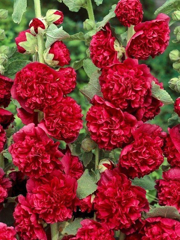 Классические садовые гиганты. Стебель мощный, ветвистый, высотой до 2 м. Крупные бархатистые махровые алые цветки собраны в длинные кистевидные соцветия. Цветет в июле-сентябре. Используются для небольших групп на газоне, миксбордеров, декорирования стен, заборов и на срезку. Срезанные стебли в стадии бутонов распускаются в воде.
