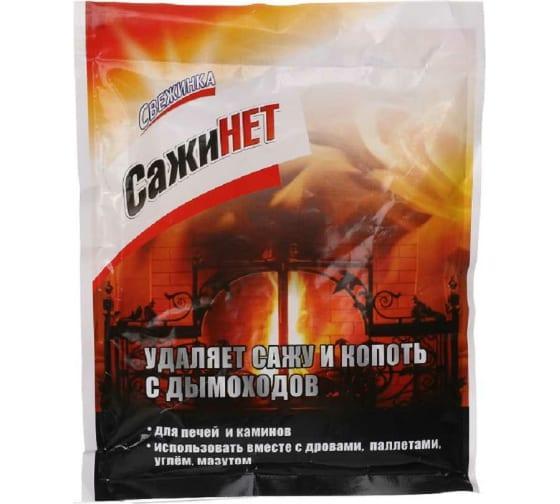 Средство Свежинка Сажинет для очистки дымоходов 100 гр 2139 - высокоэффективное средство для удаления сажи, копоти и смол. Благодаря входящим в состав солям меди, сажа и прочие отложения постепенно удаляются потоком выходящих через печную трубу газов горения, предварительно разрыхляясь от образующегося углекислого газа. Экологически безопасно. Исключает взрывы сажи в трубе дымохода. Регулярное использование средства экономит топливо.