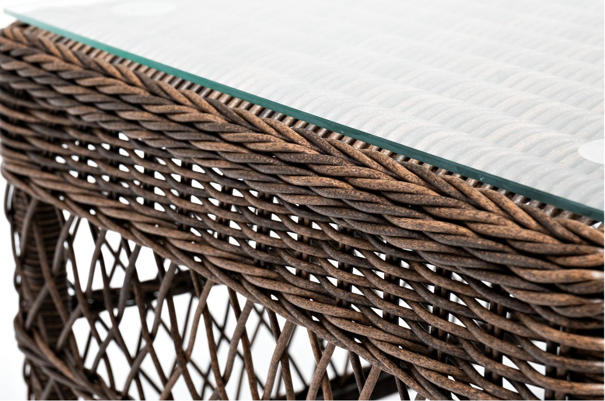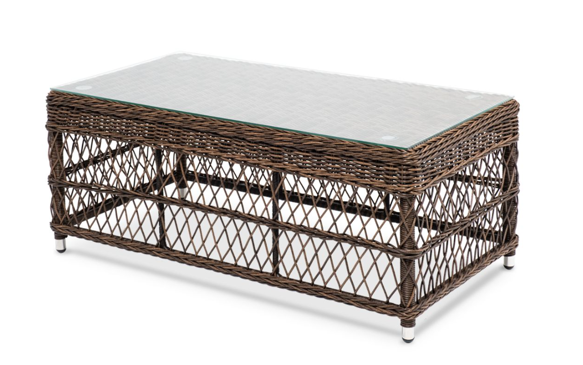 Журнальный столик "Гранд Латте" гармонично вписывается в зону отдыха, обустроенную на свежем воздухе. Размер модели – 1200×570×450 мм.