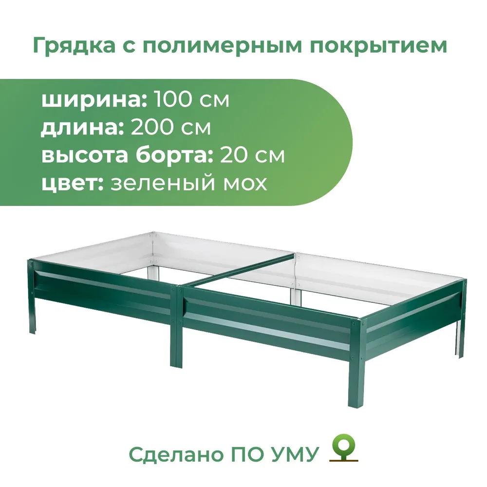 Грядки изготовлены из оцинкованного металла с полимерным покрытием толщиной 0,5 мм, каждая фигурная панель имеет по 8 ребер жесткости, все острые края завальцованы. Легкая сборка на болтах (нужен только ключ на 8). Оцинкованные грядки с полимерным покрытием - создайте уют и красоту высочайшего уровня на своём дачном участке - установите грядки на дачу! Оцинкованные грядки произведены на передовом производстве в России. Металлические грядки легко собираются и устанавливаются. Мы продумали всё до мелочей, каждая деталь делается на автоматическом оборудовании. Наши грядки завоевали любовь и признание садоводов по всей России и во многих странах мира. Металлические грядки легко переносят зимние морозы и летнюю жару. Состав грядки 1. Панель 1,0м - 6 шт 2. Ножка угловая - 4 шт 3. Ножка Т-образная - 2 шт 4. Стяжка - 1 шт 5. Винт м5 - 26 шт 6. Гайка м5 - 26 шт. Толщина металла - 0,5 мм, Высота борта грядки - 20 см. Вес вместе с упаковкой - 6,3 кг. В каждом комплекте нашего изделия есть инструкция по сборке с картинка