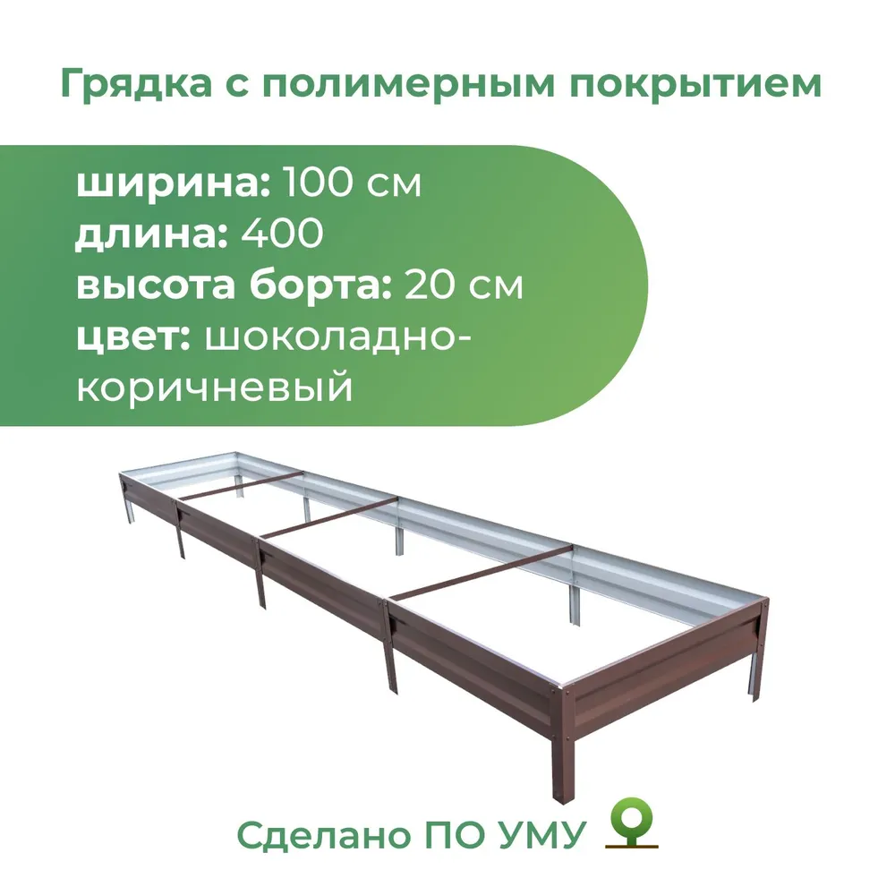 Грядки изготовлены из оцинкованного металла с полимерным покрытием толщиной 0,5 мм, каждая фигурная панель имеет по 8 ребер жесткости, все острые края завальцованы. Легкая сборка на болтах (нужен только ключ на 8). Оцинкованные грядки с полимерным покрытием - создайте уют и красоту высочайшего уровня на своём дачном участке - установите грядки на дачу! Оцинкованные грядки произведены на передовом производстве в России. Металлические грядки легко собираются и устанавливаются. Мы продумали всё до мелочей, каждая деталь делается на автоматическом оборудовании. Наши грядки завоевали любовь и признание садоводов по всей России и во многих странах мира. Металлические грядки легко переносят зимние морозы и летнюю жару. Состав грядки 1. Панель 1,0м - 10 шт 2. Ножка угловая - 4 шт 3. Ножка Т-образная - 6 шт 4. Стяжка - 3 шт 5. Винт м5 - 46 шт 6. Гайка м5 - 46 шт. Толщина металла - 0,5 мм, Высота борта грядки - 20 см. Вес вместе с упаковкой - 10,7 кг. В каждом комплекте нашего изделия есть инструкция по сборке с картин