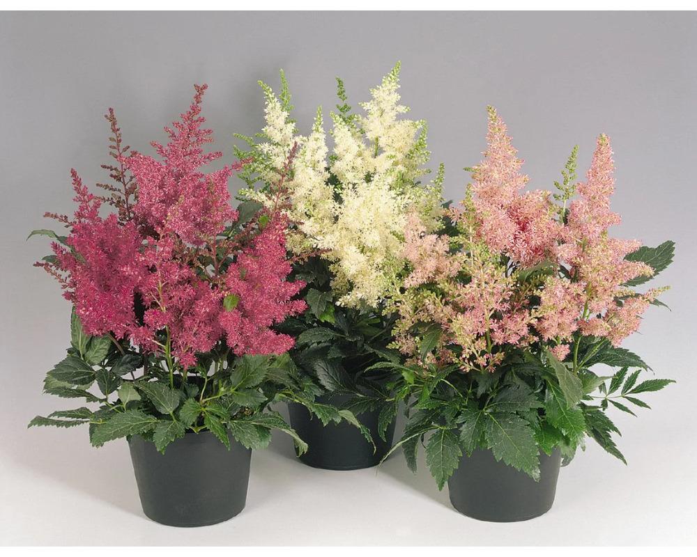Коллекция Астильба, микс — это наше суперпредложение, включающее сорта с красными, белыми, сиреневыми и ярко-розовыми цветами. Чаще всего астильбы выращиваются в горшечной культуре как многолетники. Летом их выносят на открытый воздух, чтобы оформить террасу, вход в дом или место отдыха. Но по желанию растения можно высадить на клумбу — как однолетники.