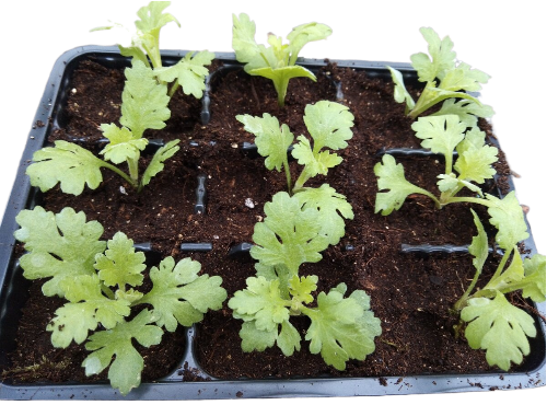 Чаще всего процедуру пересадки совмещают с делением, позволяющим получить новые экземпляры хризантем. Кустик вытаскивают из земли, стараясь не задевать его корни, а затем очищают их от остатков грунта. Растение делят на несколько частей так, чтобы каждая имела собственные корешки и побеги. Разделение проводят острым инструментом. Затем полученные делёнки высаживают в светлом уголке сада по тому же принципу, что и рассаду.