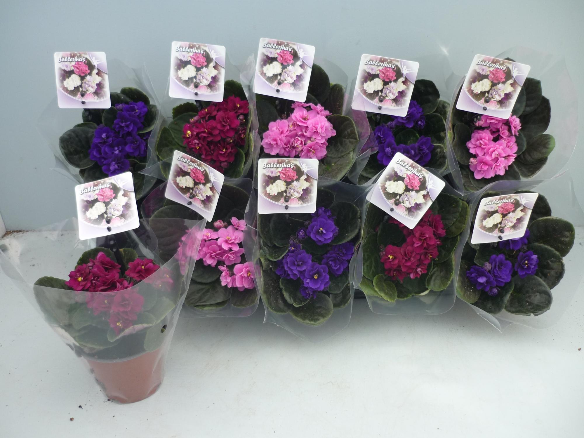 Розетка стандартного размера, в диаметре около 25 см. Листья ярко-зеленые, со светлой изнанкой, волнистые, с зубчатым краем. Цветы простые и полумахровые анютины глазки, с гофрированным краем, при полном роспуске в диаметре около 4 см. Окраска цветка белая с ярко-фиолетовой каймой зеленой рюшей по верхним двум лепесткам. Цветоносы крепкие, хорошо держат цветы. Цветение шапочное, длительное. Промышленный сорт из серии "Ballerinas".