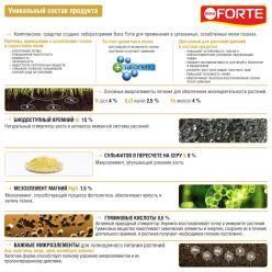 азот (N) - 4 %, калий (K2O) - 2,5 %, железо (Fe) - 4 %