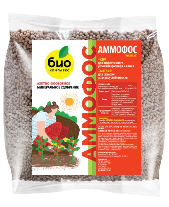 Аммофос - высокоэффективное азотно-фосфорное минеральное удобрение, содержащее в усвояемой форме основные элементы питания, необходимые для роста и развития растений.