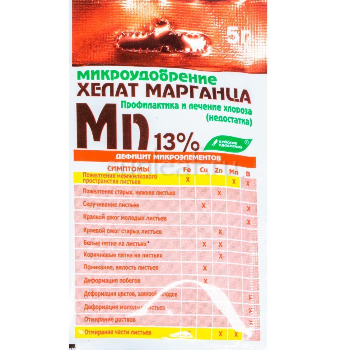 В широком диапазоне pH (рН 3 - 10), устойчив к воздействию внешних факторов, может использоваться в различных системах фертигации (полива), гидропонике, совместим с большинством водорастворимых удобрений и средствами защиты растений. Комплексное органическое соединение, которое активирует действие различных ферментов, входит в их состав, обеспечивает окислительно-восстановительные процессы, фотосинтез, дыхание растений, снижает транспирацию, повышает способность растительных тканей удерживать воду, ускоряет общее развитие растений, положительно влияет на их плодоношение. Подкормки хелатом марганца помогают предотвратить или устранить хлороз (марганцевую недостаточность) для всех видов растений.