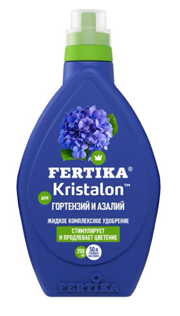 Удобрение FERTIKA Кристалон для гортензий и азалий - комплексная минеральная добавка для здорового роста, обильного и продолжительного цветения растений.