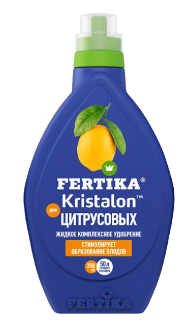 Комплексное удобрение Fertika / Фертика Kristalon для цитрусовых 250мл. Для подкормки всех видов цитрусовых (лимон, апельсин, грейпфрут, цитрон). Обеспечивает интенсивное развитие корневой системы растений, хорошее плодоношение, накопление в плодах сахаристых веществ и витаминов. Повышает интенсивность окраски листьев. Продлевает срок службы грунта горшечных культур. Нормы и способы внесения: 5 -10 мл развести в 1 литре воды и этим раствором поливать растения весной - летом 1 раз в неделю, а зимой - 1 раз в месяц. Некорневые подкормки (опрыскивание по листьям, избегая попадания раствора на цветок и плоды) - 1-2 раза в месяц.