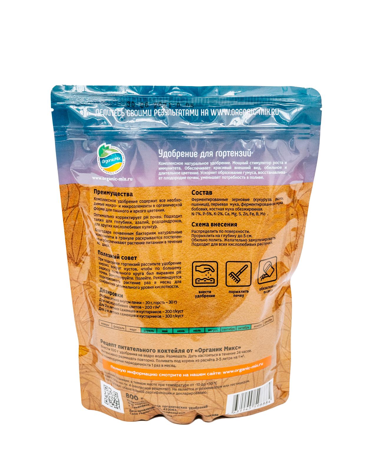 Удобрение для гортензий Органик Микс – комплексное средство, содержащее в себе необходимые макро- и микроэлементы в органической форме. Препарат закисляет почву, благодаря чему подойдет для всех кислолюбивых культур (голубики, азалий, рододендронов). Обеспечивает красивый внешний вид, обильное и длительное цветение. Мощный стимулятор роста и иммунитета. Удобрение оптимально корректирует ph почвы, ускоряет образование гумуса, восстанавливает плодородие почвы, уменьшает потребность в поливе.