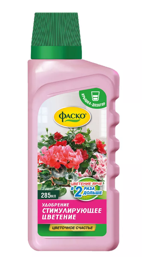 Удобрение для цветущих растений жидкое Фаско "Цветочное счастье" минеральное Стимулирующее цветение 285 мл. Специализированное комплексное жидкое удобрение для комнатных растений универсальное с микроэлементами в хелатной форме. Удобрение для цветов комнатных универсальное содержит сбалансированный набор питательных веществ стимулирующих цветение. Отличная подкормка для цветов комнатных и подкормка для комнатных растений. Обеспечивает равномерное распределение питательных веществ. Подходит как удобрение для комнатных растений универсальное для горшечных и декоративно - лиственных растений.